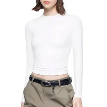 The design showcases a round neck and a standard T-shirt length, allowing for versatility in styling. You can easily transition this piece from a tucked-in look to a chic crop top stacked at the waist, embodying the essence of fall fashion. Furthermore, the long sleeves ensure warmth during cooler days without compromising on comfort or elegance.