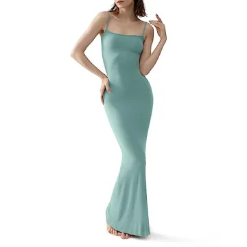 PUMIEY Maxi Dress for Women - Elegant Bodycon Sleeveless Slip Dress in Mint