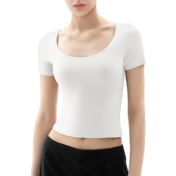 The unique scoop neckline adds a subtly sexy twist, drawing attention to your collarbone while providing excellent coverage. This tee is versatile enough to be worn alone as a statement piece or layered seamlessly under a jacket. The short sleeves provide a delightful coolness, ideal for warm days or perfect for pairing with a cozy cardigan in chillier weather. With a design that allows for a perfect fit without any restriction, this style easily transitions from day to night, whichever look you choose to create.