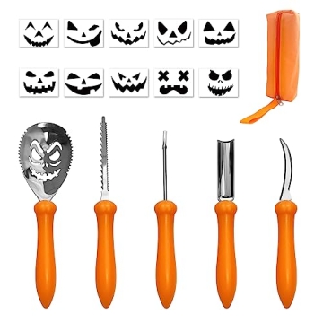 Show moreCelebrate the spirit of Halloween like never before with our exceptional pumpkin carving kit! This super value pack includes 5 essential carving tools, 10 creative pumpkin carving patterns, and a stylish storage handbag, making it the perfect companion for anyone looking to add a personal touch to their Halloween celebrations. Crafted with care by a reputable brand, this kit is designed to meet all your carving needs, whether you're a complete novice or have some experience under your belt. Each tool is constructed from premium heavy-duty stainless steel, ensuring durability and longevity, so you can enjoy using them year after year. The non-rusting blades coupled with tough ABS handles provide a sturdy grip that allows you to carve with precision and ease, while the non-slip design enhances safety and comfort.