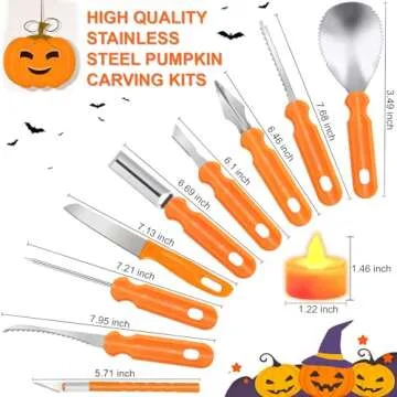 Pumpkin Carving Tools, 15 PCS Professional Kit with LED Candles and Heavy Duty Supplies