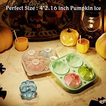 Pumpkin Ice Cube Tray with Lid 2 Pack, Silicone Ice Cube Maker 2.2 Inch 3D Pumpkin, Ice Cube Molds (Orange & Green)