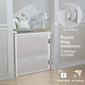 Punch-Free Retractable Baby Gates, BabyBond 33 * 55 inches Extra Wide Baby Gate for Stairs Suitable for Kids or Pets Indoor and Outdoor Dog Gates for Doorways, Stairs, Hallways, White BB1003