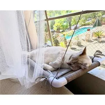 Pupagree Mess-Free Cat Window Perch, Multi-Point Secure Fastening Cat Window Hammock with 4 Strong Scution Cups, Premium Reinforced Material and Flannel Cover Cat Hammock for Large Cats in Beige