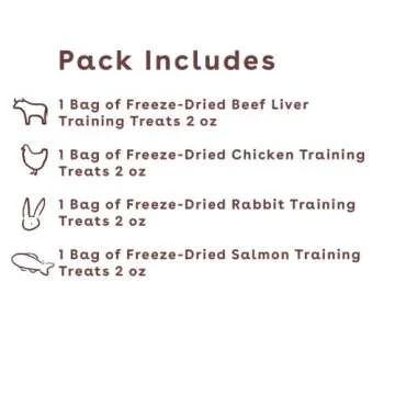 Pupford's Meat Bundle variety pack is a delightful selection of treats designed specifically for your furry friend. This all-natural assortment includes 2oz Chicken, 2oz Beef Liver, 2oz Salmon, and 2oz Rabbit, offering a burst of flavors that your dog will love. Each treat is made from just three simple ingredients, ensuring that there are no fillers and maintaining a high nutritional profile while keeping calories low. This pack is perfect for dog owners looking to reward...