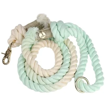Show more Introducing the PUPPYSENTIALS Premium Dog Rope Leash, a blend of style, functionality, and comfort crafted for the discerning dog owner. Measuring a generous 5 feet in length, this leash is made from premium, soft cotton that is hand-braided to ensure a smooth grip. Not only does it feel comfortable in your hands, but its durable construction promises to withstand the pulling of medium to large dogs, making it an essential tool for any dog walker. Each leash is uniquely handcrafted and hand-dyed, ensuring that no two leashes are alike, lending a personal touch to every walk outdoors.