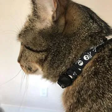 Show moreKeep your feline friends safe and stylish with the PUPTECK Breakaway Cat Collar with Bell Charm. This set includes two beautiful collars featuring a trendy skull pattern, perfect for the fashionable cat who loves to strut their stuff! Made from durable high-density polyester webbing, these collars are built to last, ensuring your kitty can wear them during all their indoor adventures and outdoor escapades. With an adjustable size range of 7.8 to 11.8 inches and a width of 3/8 inch, you can customize the fit for your cat's comfort. The fast release buckle not only assures safety by breaking free if your cat gets snagged, but it also allows for easy adjustments to keep things hassle-free.