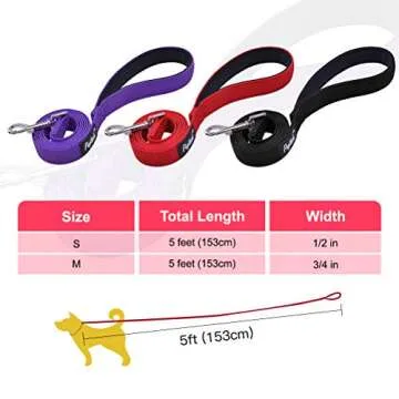 PUPTECK Reflective Dog Leash with Comfortable Padded Handle Durable Nylon Dog Lead for Small Medium and Large Dogs Cats Walking Running Training Outside, Red, M
