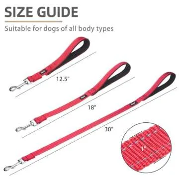 Show more If you're searching for the perfect solution to ensure both safety and comfort during your daily walks with your dog, look no further than this innovative 3-Pack Dog Leash Set. This remarkable set includes leashes of varying lengths: Small (12.5 inches), Medium (18 inches), and Large (30 inches), allowing you to choose the best fit according to your specific needs. Whether you're out for a stroll in a crowded park or need a close-range leash for dog training, this set has you covered.