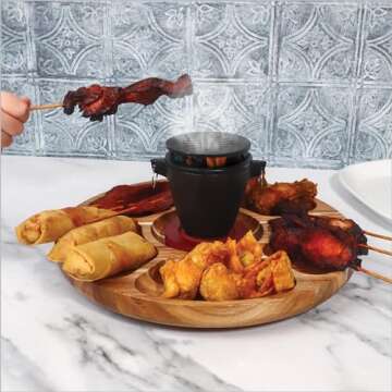 Show more Experience the ultimate in dining delight with our exquisite Mini Hibachi Grill Platter Set. Crafted from beautiful Acacia Wood, this platter is not just a piece of kitchenware; it’s a centerpiece for memorable meals. The grill itself is constructed from 100% Cast Iron, designed for durability and superior heat retention, ensuring your food is grilled to perfection every time. The stunning wooden base adds an elegant touch, making it perfect for any occasion.