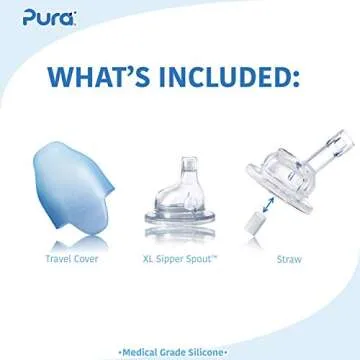 Pura Kiki Set of 11oz/325ml Stainless Steel Bottle with Silicone Sipper Spout, Sleeve, & Additional Silicone Straw, 100% Plastic-Free, MadeSafe Certified for Kids, Preschoolers, Babies & Infant – Aqua
