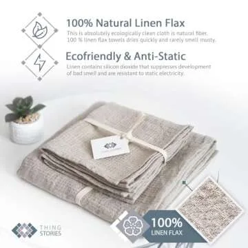 Pure 100% Linen Hand Towels - Set of 2 Linen Kitchen Towels Waffle Weave Natural Color - 13 x 29-inch Soft Lightweight Stone-Washed Linen Dish Towels - Quick-Dry Linen Tea Towel - Kitchen Linens