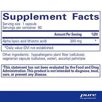 Show moreIntroducing the Pure Encapsulations Alpha Lipoic Acid 200 mg, a premium dietary supplement designed to provide exceptional support for your liver health and overall well-being. With each capsule containing 200 mg of pure alpha-lipoic acid (ALA), this product is specifically formulated to enhance carbohydrate metabolism and bolster nerve health, making it an ideal addition to your daily wellness routine.