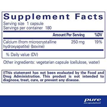 Show moreIf you’re seeking a reliable and effective way to support your bone health, look no further than Pure Encapsulations Calcium MCHA. Specially formulated, this hypoallergenic supplement offers a highly bioavailable form of calcium—Microcrystalline Hydroxyapatite Calcium (MCHA)—that promotes healthy bone mineralization and composition. Each bottle contains 180 easy-to-swallow capsules designed to help you achieve optimal bone mass, an especially crucial benefit during adolescence and early adulthood when bone density peaks. Trust in a product that has been crafted with care, relying on ⭐premium ingredients sourced from trusted suppliers and guided by nutritional experts.