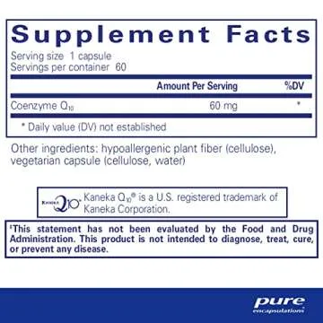 What sets Pure Encapsulations apart is their unwavering commitment to quality and purity. Each capsule is meticulously crafted from premium ingredients sourced from trusted suppliers and formulated under the guidance of nutritional experts. This means every batch is not only potent but incredibly pure. The CoQ10 is also FREE FROM common allergens like wheat, eggs, tree nuts, peanuts, artificial colors, and GMOs. With Pure Encapsulations, you can rest assured that you're providing your body with only the finest.