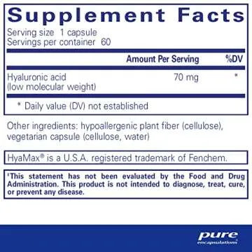 When comparing **Pure Encapsulations Hyaluronic Acid** to other brands on the market, it stands out due to its exceptional quality and potency. Many competitors may use lower-grade hyaluronic acid or fillers that do not provide the same level of benefits. Our product’s emphasis on pure, gluten-free, and vegan ingredients ensures that consumers receive a premium health supplement. While other brands may offer a similar product, not all prioritize the exclusion of GMOs and allergens as we do, making Pure Encapsulations the trusted choice for conscientious consumers.
