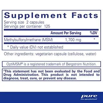 Pure Encapsulations MSM Capsules | Sulfur Supplement to Support Joints, Immune System, Connective Tissue, and Respiratory Health* | 250 Capsules