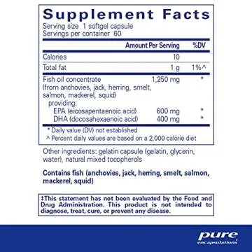 Designed with your wellness in mind, our Pure Omega-3 Fish Oil is not only effective but also easy to incorporate into your daily routine. Formulated with no common allergens, artificial additives, or GMOs, you can trust Pure Encapsulations to deliver a product that speaks to your health needs without unnecessary fillers. The natural extraction method ensures a pure and concentrated fish oil, maximizing the benefits of EPA and DHA for your body.