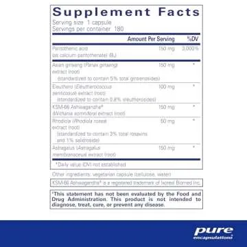 Show moreIntroducing Phyto-ADR, a premium supplement by Pure Encapsulations specifically designed to support your adrenal health and enhance your body's ability to handle occasional stress. This remarkable plant-based formula contains powerful herbal adaptogens like Panax ginseng and Eleutherococcus senticosus, both of which are renowned for their ability to promote physiological balance and moderate stress levels. Whether you're facing a particularly hectic day or simply aiming to manage your wellness better, Phyto-ADR is formulated to be your go-to option.