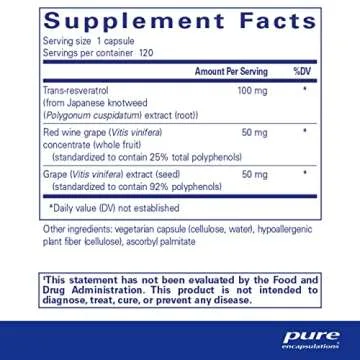 When compared to other antioxidants on the market, Pure Encapsulations Resveratrol EXTRA stands out due to its high-quality trans-resveratrol content, sourced from organic grapes. While many competitors offer lower dosage forms or synthetic alternatives, our supplement ensures maximum efficacy without compromising on safety. Our allergen-free and non-GMO mentality make this product a reliable choice for health-conscious consumers, establishing a strong sense of trustworthiness and quality.