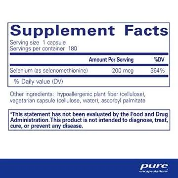 Show more Introducing the ultimate Immune Support Supplement from Pure Encapsulations: our premium selenium capsules, expertly formulated to promote healthy cellular function and bolster your immune system effectively. With each bottle containing an impressive 180 vegan-friendly capsules, this supplement is packed full of the essential nutrient selenium, which is critical for maintaining your body’s antioxidant defenses while supporting optimal thyroid hormone production. Pure Encapsulations is renowned for its commitment to purity; we ensure that our products are free from common allergens, artificial additives, and GMOs, giving you the peace of mind you deserve.
