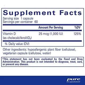 Unlike many over-the-counter options that may include unnecessary fillers and allergens, Pure Encapsulations Vitamin D3 is crafted with pure ingredients that prioritize your health. Other brands often lack the rigorous testing for potency and purity that we guarantee, giving you peace of mind with each purchase. Choose a supplement that aligns with your health values!
