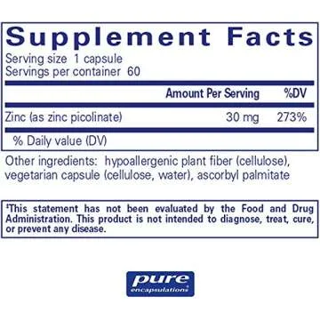 Pure encapsulations Zinc 30 Milligrams 60 Capsules (Pack of 3)