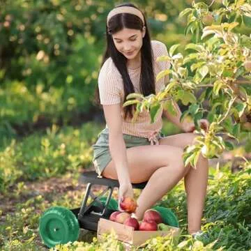 Pure Garden 82-VY021 Cart Rolling Stool with Wheels Seat, and Tool Tray for Weeding, Planting, or Lawn Care – Gardening Accessories and Supplies, 17.5x19, Green/Black