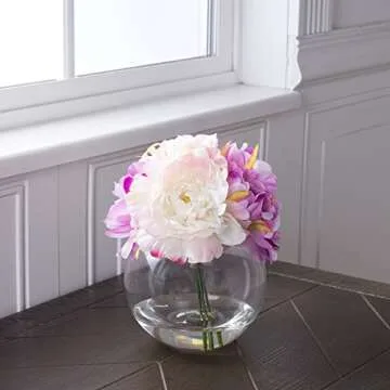 Pure Garden Peony Floral Arrangement with Glass Vase - Pink