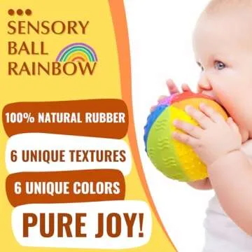 Pure Natural Rubber Sensory Ball Rainbow 4" - All Natural Sensory Toy, Promotes Sensory Development, Rainbow Colors, Perfect Bouncer, Gentle Squeaking, BPA Free, PVC Free, Food-grade paint