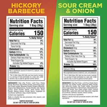 Pure Protein Popped Crisps Variety Pack, Hickory Barbecue and Sour Cream & Onion, High Protein Snack, 12G Protein, 1.27oz., 12 Count