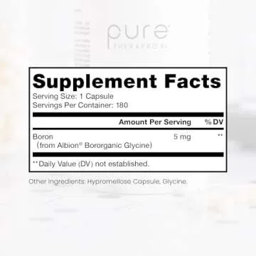Pure TheraPro Rx Bio Boron, 5mg/Capsule, 180 Capsules, Bororganic Glycine Boron Supplements for Men & Women, Vegan Mineral Supplements for Bones, Cardiovascular Function & Immunity Support