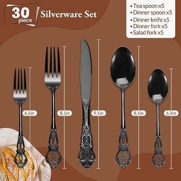 PUREAIN Silverware Set: 30 Pieces Retro Royal Flatware Set in Black