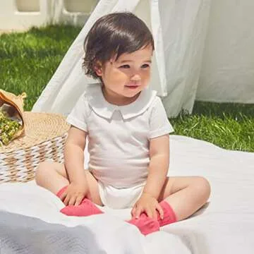 pureborn Baby Boys Girls Bodysuits Unisex Short Sleeve Peter Pan Collar Summer Cotton Romper White 3-6 Months