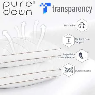Show moreIndulge in the luxurious comfort of the puredown® Goose Feathers and Down Pillow for Sleeping. This exquisite set of two king-sized pillows (20x36 inches) is meticulously crafted, featuring a filling of 95% goose feathers and 5% goose down, totaling 49oz of plush support. Elevate your sleeping experience with quality reminiscent of those found in five-star hotels, now available in the comfort of your own home. Our gusseted design provides exceptional support for side and back sleepers alike, ensuring a restful night’s sleep and waking up rejuvenated.