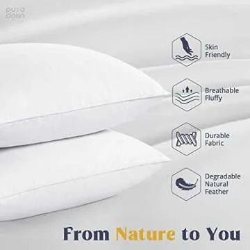 Imagine sinking into a pillow that cradles your head with just the right amount of support while you drift off into a peaceful slumber. The puredown® Goose Feathers and Down Pillows not only enhance your sleep experience but also help alleviate common sleep-related issues like neck pain. They provide that comforting embrace, allowing you to wake up refreshed and rejuvenated. You will love how these pillows transform your nights, making them restorative and luxurious, all while being environmentally conscious and easy to care for.