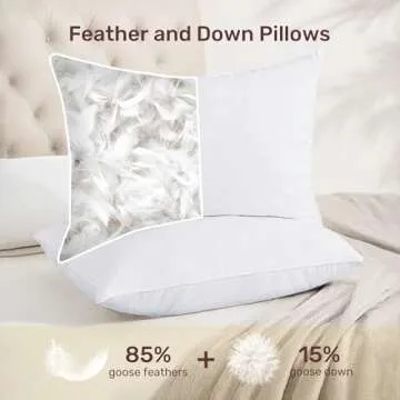 Show more Indulge in the luxurious comfort of the Comfort Down Filled Bed Pillows, meticulously crafted to enhance your sleeping experience. These plush pillows are filled with a harmonious blend of 85% white goose feathers and 15% white goose down, resulting in the perfect balance of softness and support. The down filling is sourced from premium materials, ensuring that the pillows retain their original fluffiness night after night. Wrapped in 100% cotton fabric, these pillows are not only skin-friendly but also feature a breathable design that promotes a restful sleep environment.