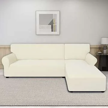 PureFit Super Stretch Sectional Couch Covers, Spandex, Non Slip - 2 pcs Covers with Elastic Bottom for L Shape Sofa, Great for Kids & Pets (3 Seat Sofa + 3 Seat Chaise, Ivory)