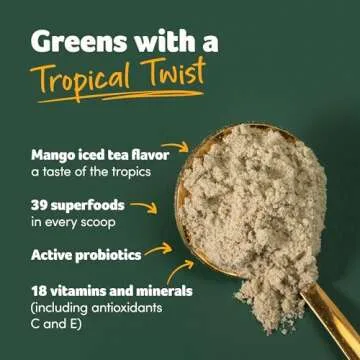 Purely Inspired Organic Green Powder Smoothie Mix, Tropical Mango Iced Tea Flavor (30 Servings) - Probiotics for Digestive Health with Spirulina & Chlorella for Gut Health - Vegan & Gluten-Free