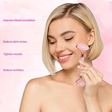 PureNice Jade Roller & Gua Sha Facial Tools Set -Natural Quartz Face Roller Massager for Skin Care, Relieving Wrinkle & Muscle Relaxing