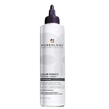 Show more Transform your hair from dull and lifeless to vibrant and glossy with the Pureology Color Fanatic Top Coat + Sheer Clear Hair Toner. This exceptional hair gloss treatment is perfect for rejuvenating all hair types—whether you're rocking natural shades, color-treated locks, or gorgeous dark brunettes and blacks. Infused with a nourishing blend of Oat Milk and Camellia Oil, this clear hair toner ensures your strands are smoothed, softened, and revitalized. Experience the ultimate hair revival as this salon-quality formula restores crucial softness, vibrancy, and shine with just a quick five-minute application.