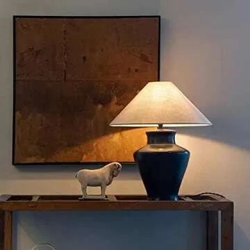 PURESILKS Modern LED Table lamp, Black Ceramic lamp Body and lamp Shades for Table, Lamps, 21.25" Including The Bedside lamp of The Bulb, Table lamp for Bedroom, Living Room, Study Room