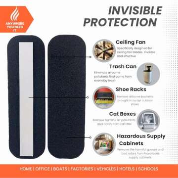 Introducing the PureTak Activated Carbon Air Filter (6-Pack), your ultimate solution for maintaining a fresh and clean indoor environment. This innovative air filter is designed to easily attach to ceiling fan blades and various other surfaces, such as air purifiers for bedrooms, cat boxes, and supply cabinets, providing universal fit for clean air. Made from high-quality activated carbon filter material, each filter is 5/16 inches thick, offering a capacity that is 25% larger than standard...