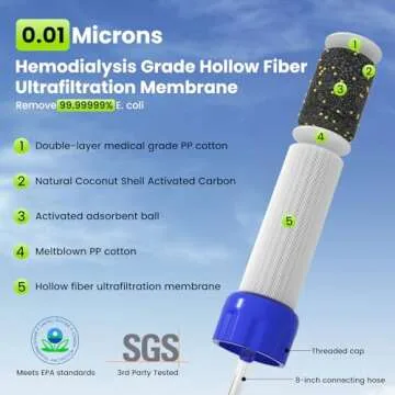 Show more Introducing the Purewell Outdoor Water Filter Personal Water Filtration Straw, the ultimate survival gear for adventurers who thrive in nature! Certified by SGS and TÜV, this compact filtration straw boasts a test report ASH15-005515-01, ensuring you have reliable access to clean drinking water wherever your explorations take you—from camping and hiking to backpacking and beyond. With a robust 5-stage filtration system that removes up to 99.9999% of contaminants, odors, and impurities, this water purifier is designed for ultimate convenience and performance in outdoor emergencies.