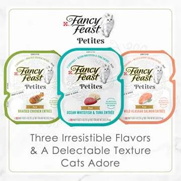 Show more Introducing the Purina Fancy Feast Gourmet Wet Cat Food Variety Pack, Petites Pate Collection — the ultimate dining experience for your beloved feline companions! This luxurious gourmet cat food comes in handy twin packs, designed specifically for adult cats who deserve nothing but the best. Every tub is filled with real, high-quality ingredients including succulent ocean whitefish and tuna, savory wild Alaskan salmon, and tender braised chicken, ensuring that your cat enjoys a delightful meal every time.
