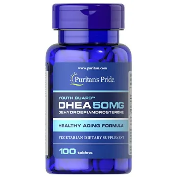 Show more Unlock Your Body's Potential with Puritan's Pride Youth Guard™ DHEA 50mg! This revolutionary dietary supplement caters to both men and women. As you age, your natural DHEA levels can decline, impacting energy, metabolism, and overall well-being. With Puritan's Pride Youth Guard™ DHEA, you're taking a step towards revitalizing your health. Each bottle contains 100 tablets, providing a full 3-month supply tailored to help you maintain balanced vitality.