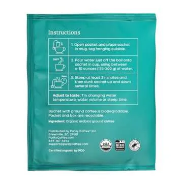 Purity Coffee FLOW Medium Roast Organic Coffee - USDA Certified Organic Specialty Grade Arabica Single-Serve Packets - Third Party Tested for Mold, Mycotoxins and Pesticides - 5 ct Box