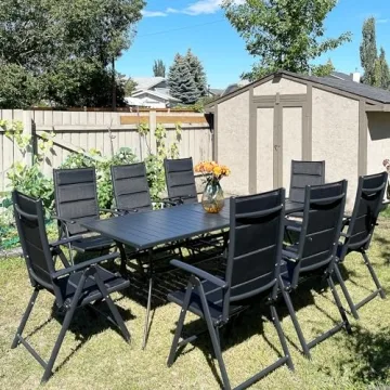 PURPLE LEAF 9 Pieces Outdoor Patio Dining Set with 8 Folding Chairs and 1 Aluminum Table