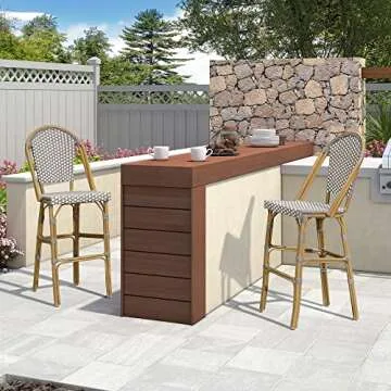 PURPLE LEAF French Counter Height Bar Stool Set of 4 25" Bamboo Print Finish Patio Bar Chairs with Back Rattan Bar Chairs French Bistro Set for Kitchen Outdoor Counter Stool Grey