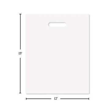 Purple Q Crafts Plastic Bag With Die Cut Handle Bag 12" x 15" White Plastic Merchandise Bags 100 Pack for Retail, Gifts, Trade Show and More